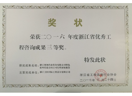 荣获2016年度浙江省优秀工程咨询成果三等奖