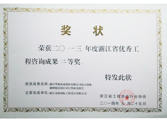 荣获2013年度浙江省优秀工程咨询成果二等奖
